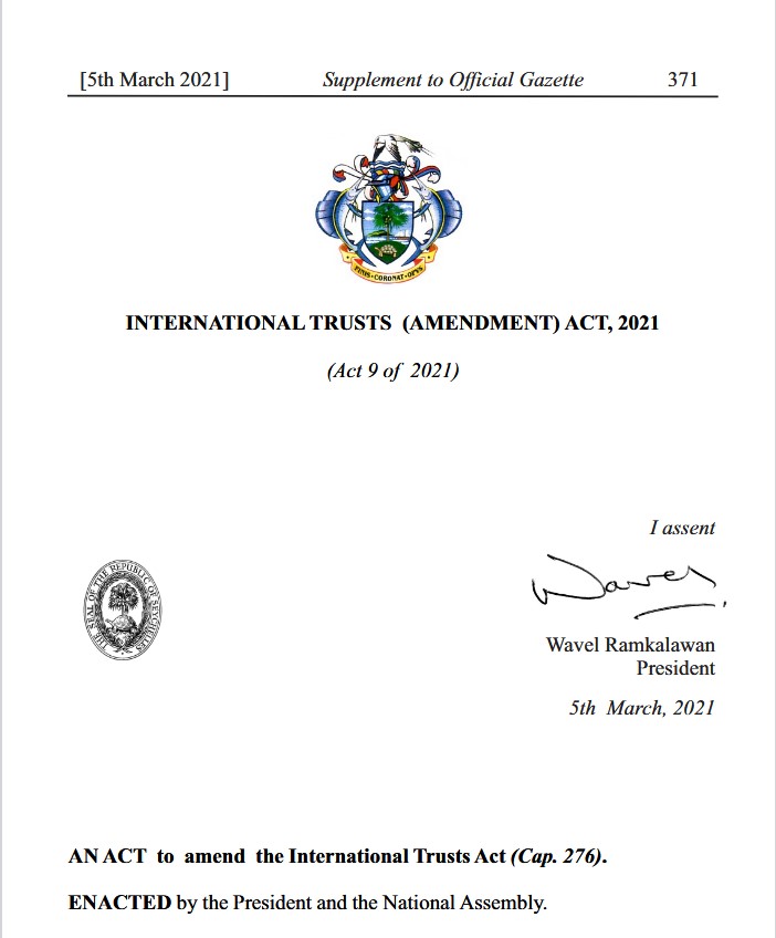 The National Assembly has approved amendments to the International Trusts (Amendment) Bill, 2021. The Minister for Finance, Economic Planning and