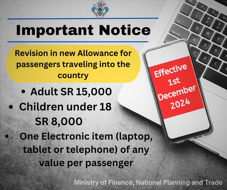 Revision in Passenger Allowance for those traveling into the country The new revision in Passenger Allowance for those traveling into